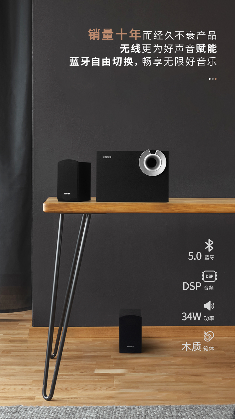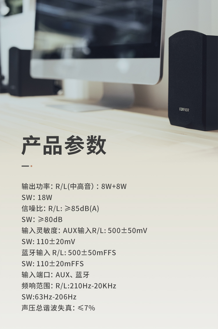 漫步者(EDIFIER) R201T06 2.1聲道 多媒體音箱 音響 電腦音箱 黑色¥189.00